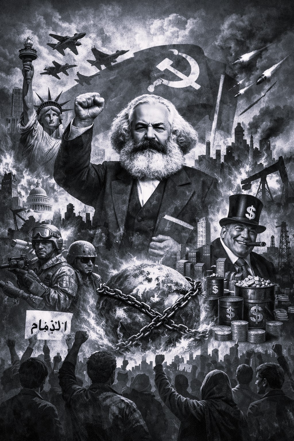 في خضم الحرب الكارثية والبربرية التي أطلقتها الإمبرايلتان الكبرى، الأمريكية والصغرى، الإسرائيلية، في إقليمنا المشرقي، يتعين علينا أن نخرج قليلاً من لجج القتل والدمار، وأن ندخل ولو مؤقتًا إلى عالم الفكر، لمحاولة فهم ما يجري في سياق آخر أو في إطار مختلف. قلنا، ونكرر دائمًا، إن هذه حرب إمبريالية. لكننا ننسى أن نرفق ذلك بتحديد من هي القوة أو الطبقة التي تقوم بهذه الحرب الموبقة. نقول أيضًا إن الولايات المتحدة هدفها السيطرة على النفط والغاز والموارد الطبيعية لإيران وفنزويلا (وقريبًا لكل القارة الأمريكية – القطب الشمالي)، لكن هذا التوصيف هو تزييف كامل: كلا. ليس الـ350 مليون أمريكي يقومون بذلك (هناك…